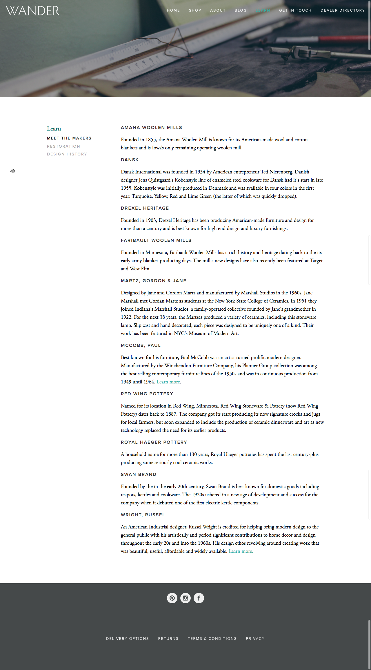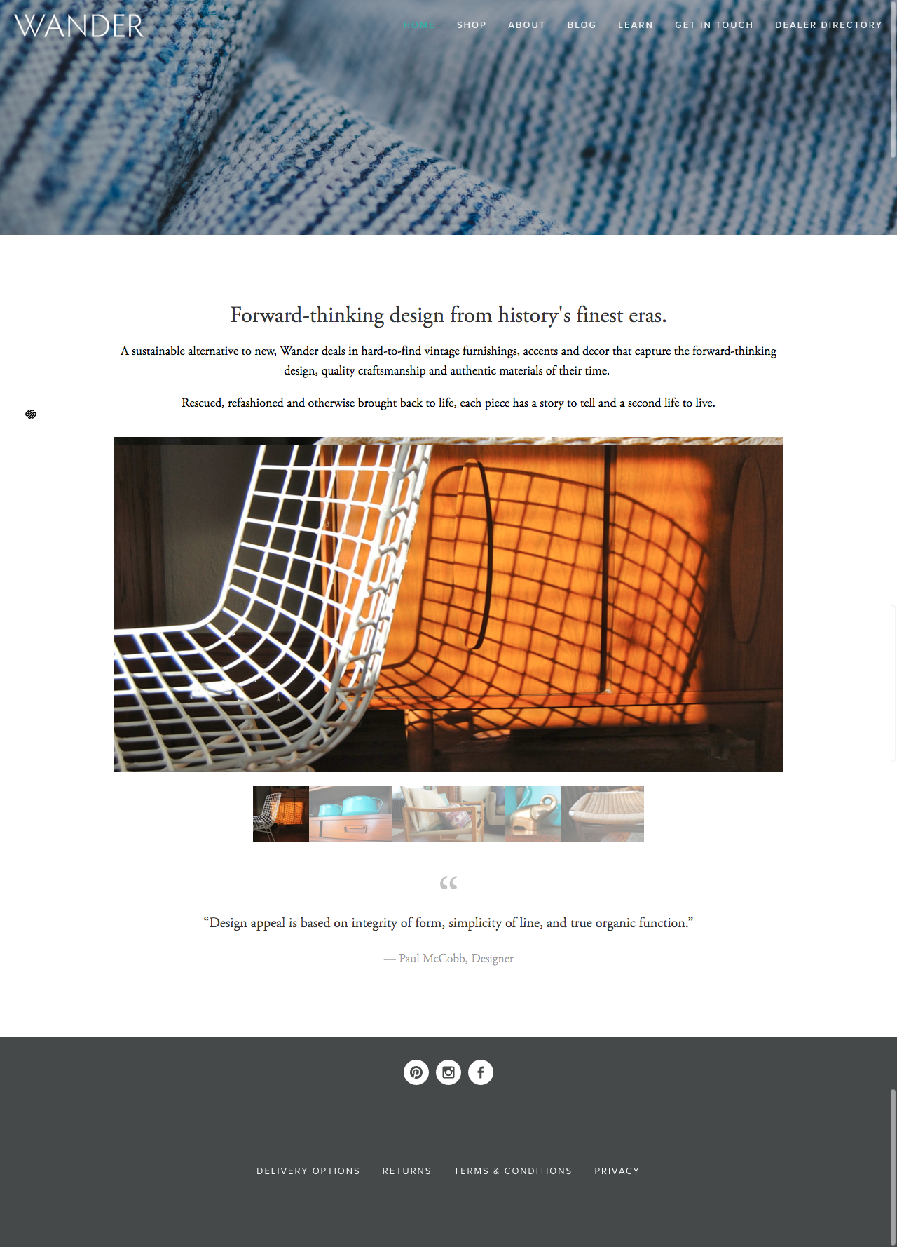 Create a brand name, tagline, e-commerce experience and social accounts for Wander, a vintage retailer specializing in mid-century furniture and designs for the modern collector.
